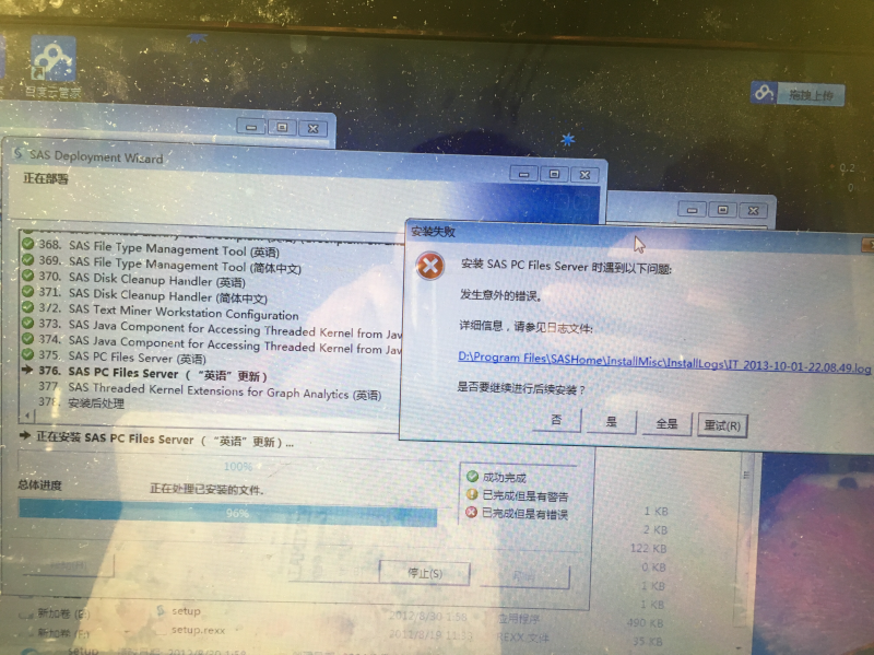 SAS安装到最后时会出现这样的提示,求大神指教该如何解决 发自小木虫IOS客户端 |