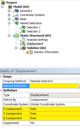 自学ansys 中 ,遇到个问题 按照书上一步一步操作,有说道在name selection 这边选择某项selection 但是为什么我这边什么都没有,上面已经做了两个selection了 为什么会遇到这个问题?麻烦懂行的人帮忙回答下 谢了 1.png |