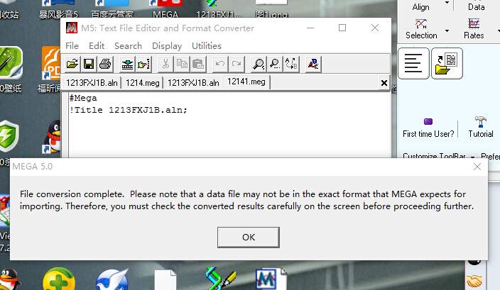 各位大神!!进化树制作求助!.aln不能转换为meg格式,序列不能两两对比
