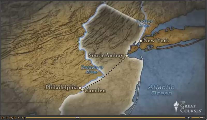 He'd have to lay about 76 miles of track between Camden, which laid a short ferry ride across the Delaware River to Philadelphia, and South Amboy, which was another longer ferry ride across the mouth of the Hudson River to Manhattan