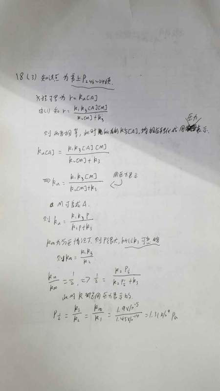 1 18题的第(3)问不会,再高压极限是的速率方程是什么?高压极限意味着什么? 2 那个弛豫方程的该如何求呢? 3什么叫凝聚相反应?具体解析一下图中那个反应为什么是凝聚相反应? 6U95O2~QIPBM`T)08VP_JNK.png [EFH8INH]XFGPK02QEHYBOG.png EZ$HI1U34`]7XA~UTME)6{L.png |