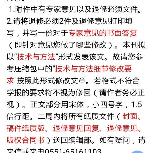 投的医学某学报,退修一次后,收到的这样的回复,应该没问题了吧,专家意见是按学报要求修改,学报要求就是按照技术与方法格式修改字体什么的。