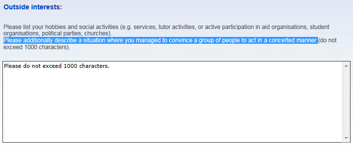 在申请德国的phD奖学金,怎么有这一关???这是你要求写个小作文还是对话啊???求助攻!!! Please additionally describe a situation where you managed to convince a group of people to act in a concerted manner 搜狗截图15年12月16日1611_1.png |
