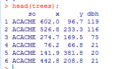 选了门生态统计学作业,老师给了个题目让练习下,看了好久,越来越迷糊..... 问题: BCI样地内的物种多样性与哪些环境因子有关? 数据: tress.txt 树木的种类属性,x,y坐标,胸径 env.RData 包含了10个该样地的环境因子数据 ps:我总想倒入ARCGIS里做。。。 图1.png 图2.png |