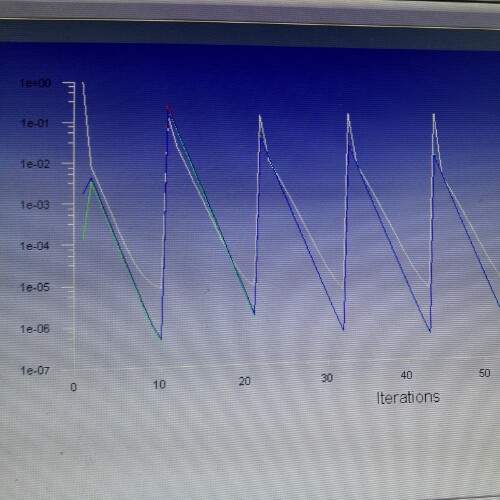 两相流动,无论气液气固,非稳态的残差曲线都是这种类型,最好的事每一实步内达到稳定,即‘先降后平’,那么怎么做呢,不用残差标准而固定足够多的迭代步数。