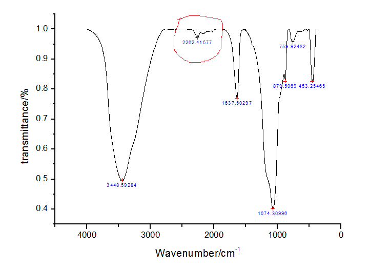 二氧化硅红外光谱图分析,圈标注的那个峰不是其特征峰,想知道是什么物质的吸收峰,已有8人参与
