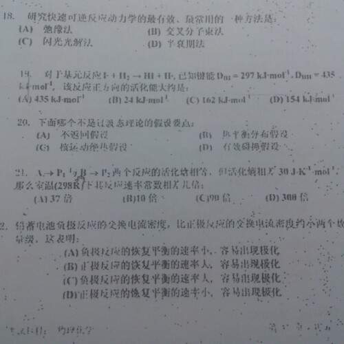 还是一样的,发些有疑问的物化选择题【相平衡】【可逆电池】【动力学】出来讨论一下