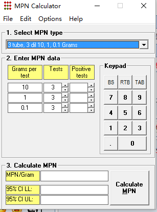 请问MPN法测定细胞密度采用MPN计算器4.04(Klee 1996)计算的具体操作?下载了这个软件(我传的下面图片就是这个软件的界面),但是不知道怎么用。请求会用的专家给予帮助,非常感谢! MPN计算器.png |