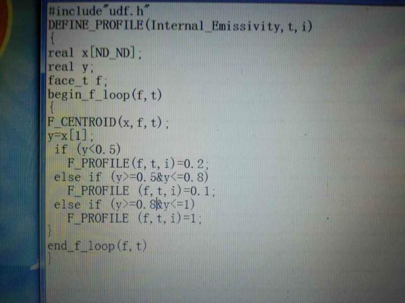 就是我的计算域中有一个面,大家可以想象成单子的一个墙面或者汽车的顶面,重点只在于这个面上不同区域的发射率不同(终极目标是模拟装甲车的迷彩表面不同处发射率不同,我是初学,就用斑马线练练手)如图哈,只随着x轴一条条斑马线,斑马线间距0.1m,阴影处发射率0.5空白处发射率1,这个udf应该怎么写呢,我想仿照这个写,如图,但是不知道间隔那部分怎么处理,有人比较熟悉吗?我自己编了一个很简化的,就是一个区域划成三半如图,用if来写,但是很多的就不知道怎么处理,跪求帮忙 发自小木虫Android客户端 |