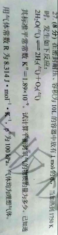 另外所给的的平衡常数是在标况下计算,而反应是在1750k下面进行,即使计算出了标况下的转化率应该也不能应用到1750k下面,而且也不能根据范特霍夫方程去计算,少了一个参数焓变。 发自小木虫Android客户端 |