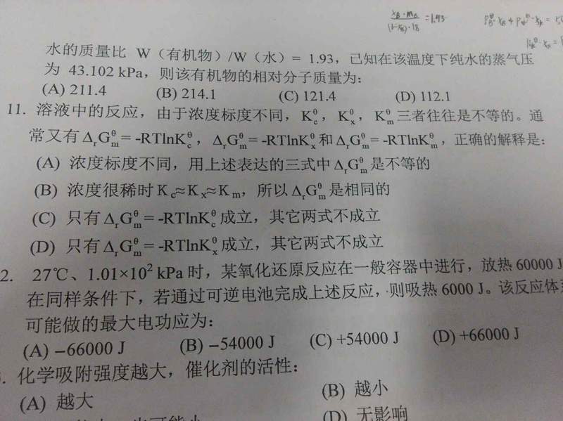 B.理想稀溶液,三者都看成近视相等.第二个选C,书上有一个表格,你查下表,可判断出来,,第三题选B,反应机理的问题,书上有 发自小木虫IOS客户端 |
