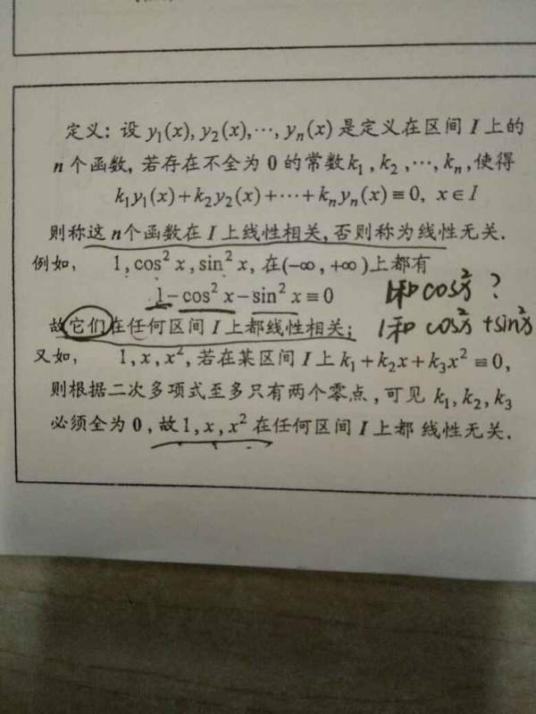 那也就是说1和sin?x+cos?x……线性相关,并不是1,sin?x,cos?x三者线性相关