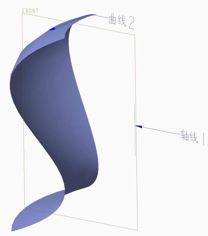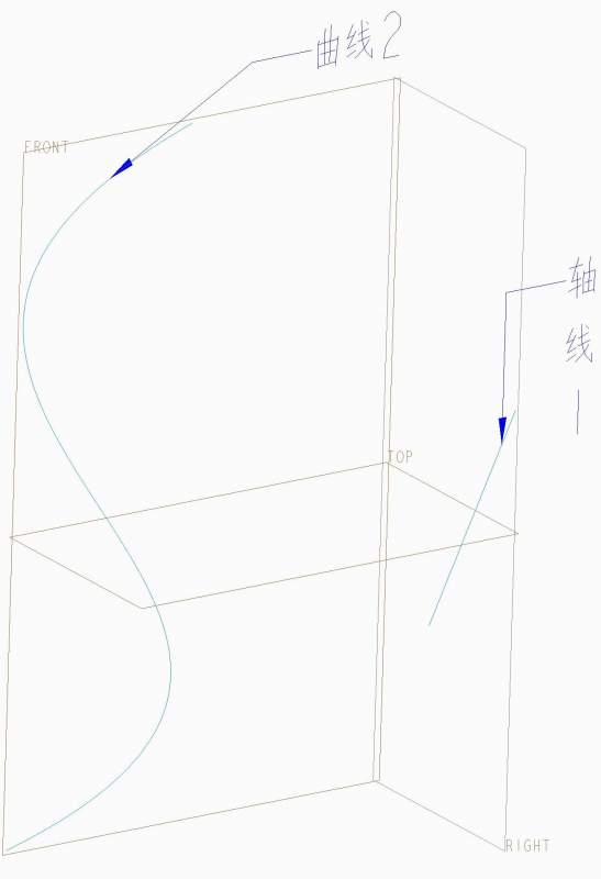 图1: “轴线1”在RIGHT平面内,“曲线2”在FRONT平面内,两者是异面的。 怎么画:“曲线2”绕“轴线1”旋转,扫略形成的曲面? 比如像:图2里面“曲线2”和“轴线1”是共面平行的,“曲线2”绕“轴线1”旋转扫略所得曲面就像图2一样。 图2: |