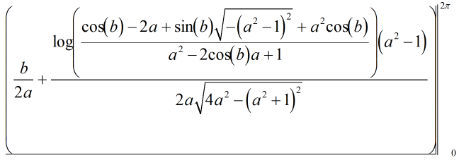int((a - cos(b))/(a^2 - 2*cos(b)*a + 1), b, 0, 2*pi) 发自小木虫Android客户端 |