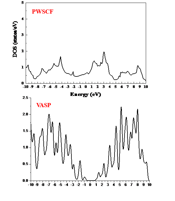 PWSCF计算的态密度和vasp软件计算得到的态密度不一致