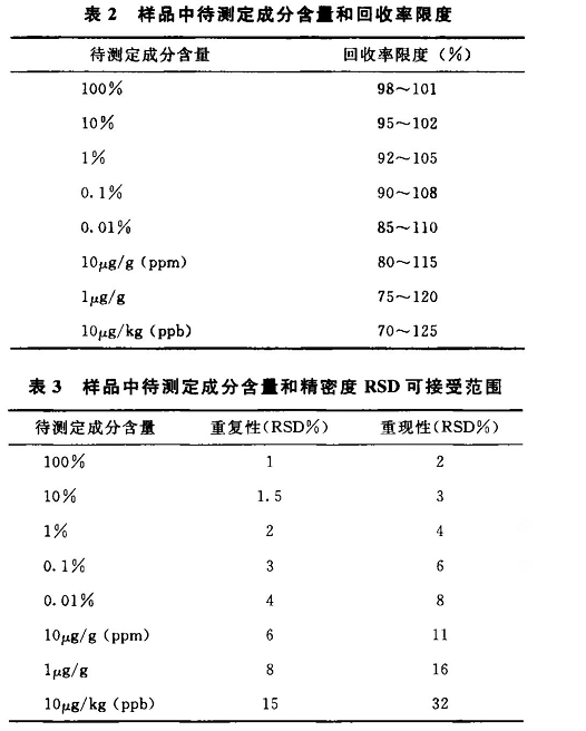 方法的检测限和回收率问题