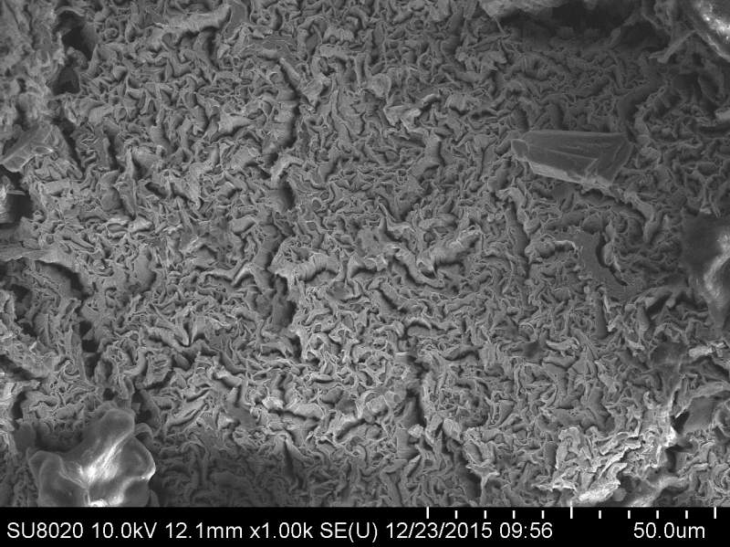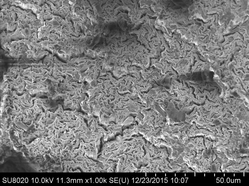 这个是粉末冶金发做的钨电极的拉伸断口,我感觉是韧性断裂,有撕裂棱什么的,除此之外也看不出什么了