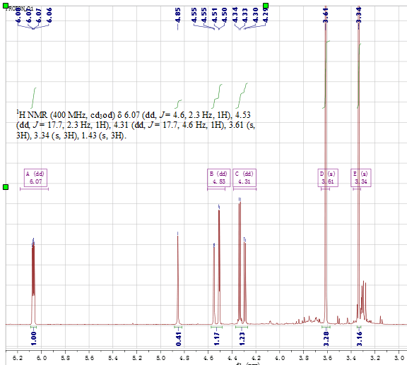 6.07 dd 1H J=4.6, 2.3 4.53 dd 1H J=17.7, 2.3 4.31 dd 1H J=17.7, 4.6 这会是个什么结构? |