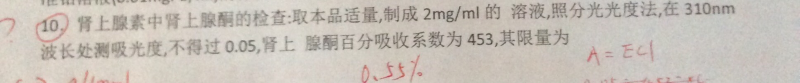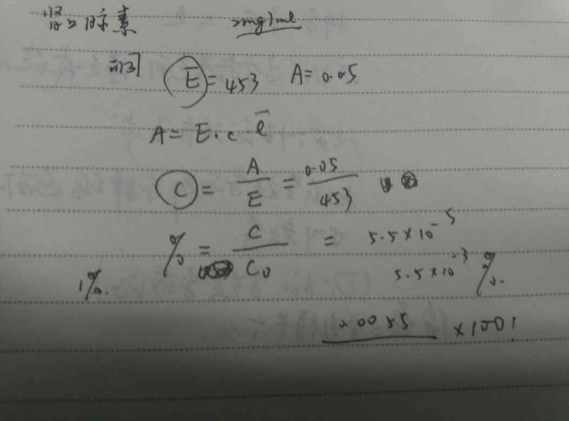 我已经算出来了,A=ECL中的C单位是g/100ml.单位别换错就能算出来是0.55%