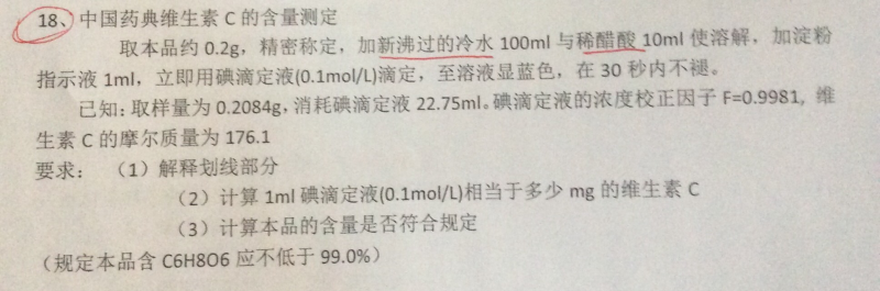 第三问就是计算Vc的含量 和99%比较 大于就符合规定,合格。至于算法就是用滴定度算出含量和标示量作比较。也就是相当于标示量的百分含量。