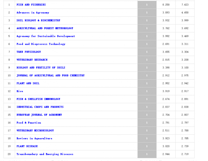 常常看到别人说一区文章二区文章,有人能告诉我农学类的一区文章杂志期刊都有什么么 发自小木虫Android客户端 |