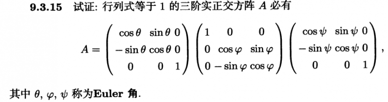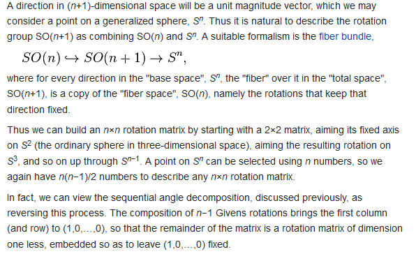 http://www.bio21.bas.bg/ibf/dpb_ ... /CD_IM_2012_AIP.pdf http://stanford.edu/~rezab/nips2 ... ted/coordescent.pdf http://www.wikiwand.com/en/Euler ... extrinsic_rotations https://en.wikipedia.org/wiki/Rotation_matrix 截图从理论到实践都告诉我们如何将 SO(n)分解为n(n−1)/2 个Givens 矩阵的乘积,你自己搜搜关键词,看看对n=4,5 有没有实例操作。 Givens rotation compositon.png |