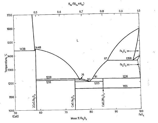 请教以下氧化钙氧化铁相图中铁酸一钙和铁酸二钙在1216度至1228度之间的区域里是什么化学成分,以及这个区域与1218度以下那个区域有什么区别,还有就是铁酸一钙与铁酸二钙固溶么? 氧化铁-氧化钙.png |