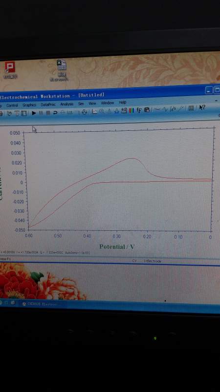 各位大师,小弟初做超电,材料为钴酸镍化合物,为什么我的CV曲线测出来是这个样子呢?主要想问为什么测不出氧化还原峰,以及在0.5-0.6V这个高电位区间为什么那个角是朝下呢,不应该朝上吗?PS:电解液为3M KOH,电极为饱和饱和甘汞和铂。 IMG_20151229_094149.jpg |