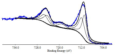 下面是含铁的样品xps分峰后的图谱,我在Fe2p3/2轨道上分出了两个三价铁的峰,根据结合能的位置(710.8 eV, 711.8 eV),大概确定是FeOOH和Fe2O3中的Fe(III),分不出二价铁的峰,这样的处理方式合理吗?此问题困扰小女子好久了,相关文献也没有找到,希望能够得到大侠们的指导,不甚感激。 xps-air-20.png |