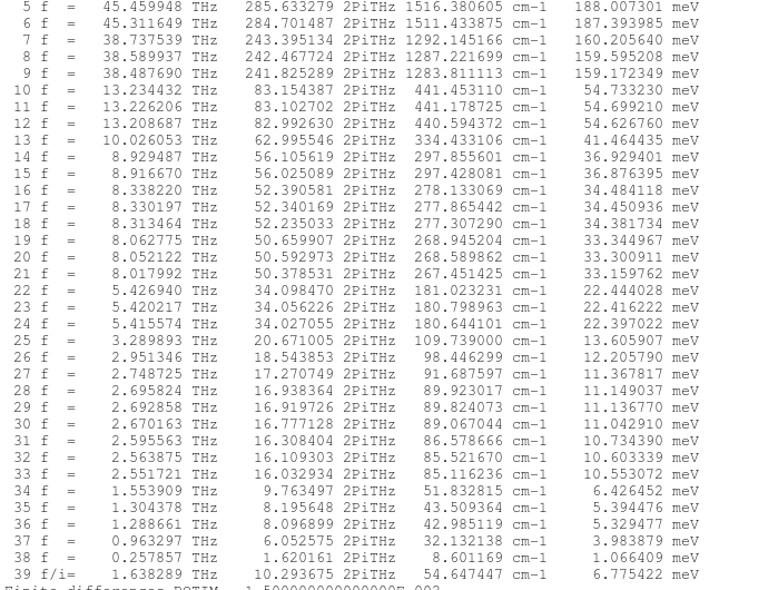 我计算后把OUTCAR放到wxdragon中,想看虚频是哪个原子或哪几个原子产生的,但是只能看到前十个振动频率。求大神解答! (频率只能看到441左右,并不能看到最下边虚频) 捕获.PNG 捕获.PNG |
