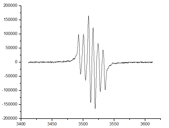 初学ESR(EPR),请问从图中可以得到什么信息?根据单晶结构,推测是双自由基,有可能是三线态的碳双自由基吗?(室温下,溶液和固体都未观察到中场裂分)什么样的耦合会有不等高但对称的六峰呢? 甲苯,室温 固体,室温 |