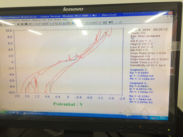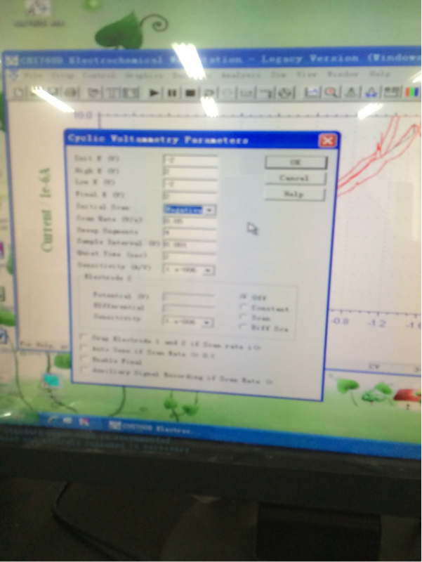 硫酸铜和甲基磺酸和氯化铜的混合溶液,做循环伏安的时候为什么会得到那么杂乱的峰,采用三电极体系,甘汞 (参比电极)铂电极 (辅助电极)波碳电极(工作电极)参数设置如下 发自小木虫IOS客户端 |