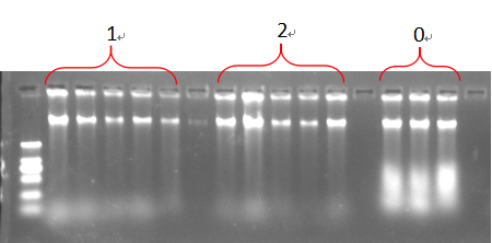 请高手分析一下这个提取的植物叶片基因组dna的跑胶图。