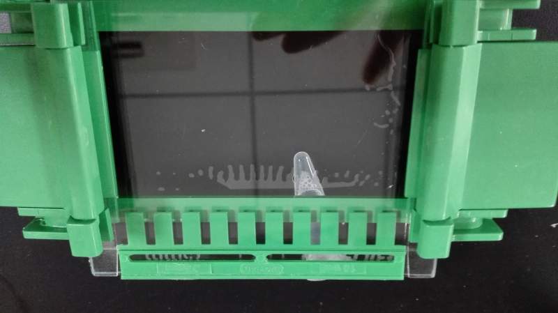 我做的SDS-PAGE电泳胶,用异丙醇压线,最后灌堆积胶后,胶版中就出现了这种情况,请大神帮帮忙,这是什么原因引起的呀。而且做胶的过程中还很喜欢漏胶的,大家有什么技巧可以避免漏胶的,谢谢大家了。 IMG_20160104_101204.jpg |