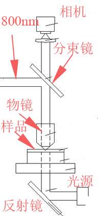 我想用CMOS相机观测激光打在样品上的光斑,光斑直径最好是1~5μm。 物镜是100X油浸物镜。 激光通过分束镜反射,再经过物镜到达样品。下面是照明光源。 激光800nm左右。目前实验总是看不到光斑(感觉光斑在显像之外),或者出现白色条纹(像是光学平台上的金属纹路似的,汗) 请问如何实现才好? 我并非光学专业的,所以请各位前辈说的详细一点~在此谢过了~ 聚焦.jpg |
