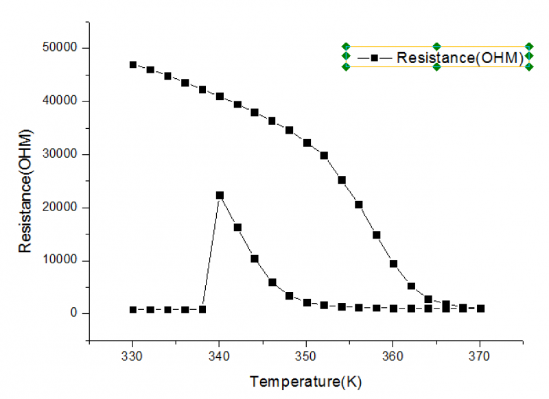 我是用原子层沉积方法生长VO2薄膜(未掺杂)(011 )取向。用四探针法测变温电阻率时,降温时由金属态转变为半导体态的电阻率怎么下来了(<340 K)?不合常理啊,求大神们给出合理解释! (数据是请别人测的,具体测试条件也不清楚)vo2.PNG |