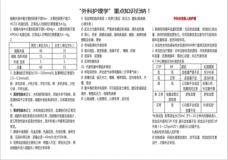 “外科护理学”重点知识归纳