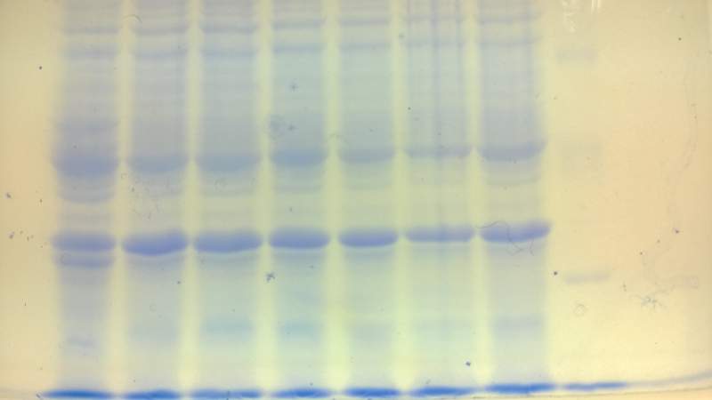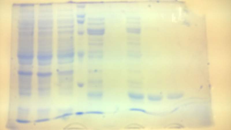 sds-page 蛋白染色脱色后条带特别特别浅,求救啊 已有2人参与
