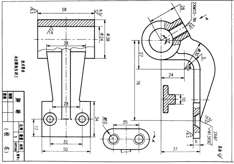 要加工一个内螺纹,螺纹孔中心线上引出标注为:2XM10-7H,粗糙度3.2。我想知道: 1. 7H和3.2的粗糙度指的是加工螺纹前所钻孔的公差和粗糙度还是螺纹的? 2. 钻孔后需不需要粗绞或精绞? 从钻孔到加工螺纹完成的工序是什么? 求好心人解答 课设图片.png |