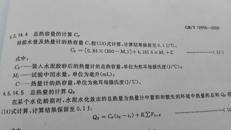 水泥水化热测定方法国标中关于总热容量Cp的计算
