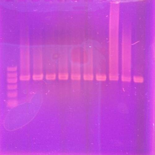 我做的是植物DNA条形码,但是每次PCR产物送公司测序时有一些产物信号太弱,出现中止的现象,可是我所有产物扩增体系都是一样的,DNA模板1.5微升,上下游引物各0.4微,MIX混合酶9.8微,加双蒸水到20微升的体系。 PCR也扩增出来了,请问是什么原因导致的呢?谢谢大家啦。这个是我的PCR扩增胶图 发自小木虫Android客户端 |