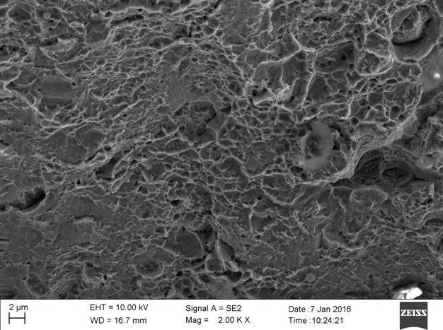 TC17钛合金板状拉伸断口,试样厚度2.39mm,宽度20mm。高倍的SEM图片上韧窝高高低低深深浅浅的,看不懂啊。这个组织不是等轴晶,而是贝塔大晶粒内转变为细小的针状组织。 3.JPG 1.JPG 2.JPG |