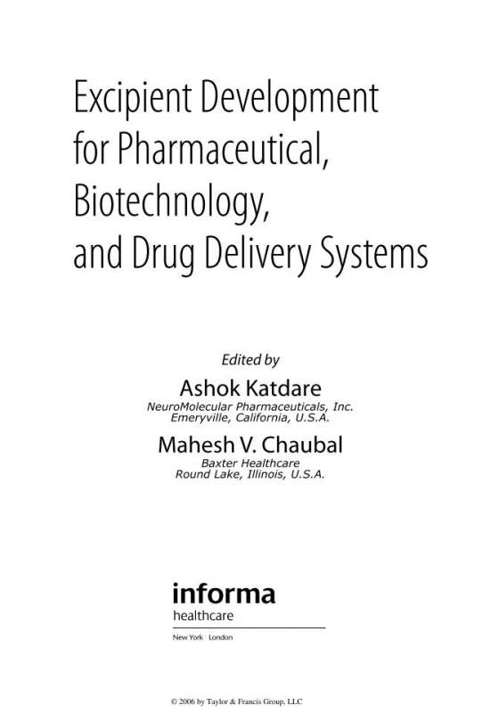 Excipient Development for Pharmaceutical, Biotech, Drug Delivery Systems