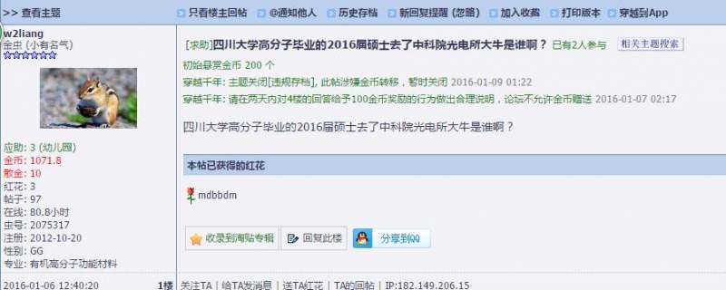 在 材料 区 功能材料 版的帖子 https://muchong.com/bbs/viewthread.php?tid=9837636 中 ID: w2liang ;wulijiayou ; 有利用疑似马甲转移金币的违规行为。 经查证: ID w2liang 使用 IP 221.10.***.*** - 四川省成都市 ID wulijiayou 使用IP 182.149.***.*** - 四川省成都市电信 部分IP打码截图: 回帖内容截图: 按照https://muchong.com/bbs/viewthread.php?tid=1996653中所示,认为ID w2liang 以及 wulijiayou 有利用马甲转移金币的嫌疑。 现要求@w2liang @wulijiayou 在两日内回帖解释。 以下内容为版主对楼主的提醒与沟通: 楼主没有做出任何回答! 按照https://muchong.com/bbs/viewthread.php?tid=1996653中所示: 现要求对ID w2liang 进行 扣除20BB 的处罚(尚未扣除); 现要求对ID wulijiayou 进行 扣除违规所得100BB 的处罚(尚未扣除). [ Last edited by 江南的竹 on 2016-2-25 at 12:50 ] |