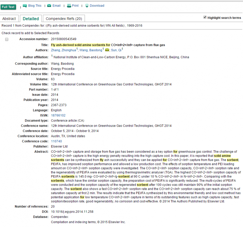 Fly Ash-derived Solid Amine Sorbents for CO2 Capture from Flue Gas 刊在《Energy Procedia》,2014,vol 63: 2367 – 2373 想查询EI和ISTP检索信息。 非常感谢啊~~~ |