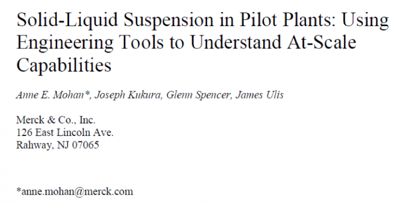 Solid-Liquid Suspension in Pilot Plants: Using Engineering Tools to Understand At-Scale Capabilities Anne E. Mohan*, Joseph Kukura, Glenn Spencer, James Ulis Merck & Co., Inc. 126 East Lincoln Ave. Rahway, NJ 07065 *anne.mohan@merck.com 发自小木虫IOS客户端 |