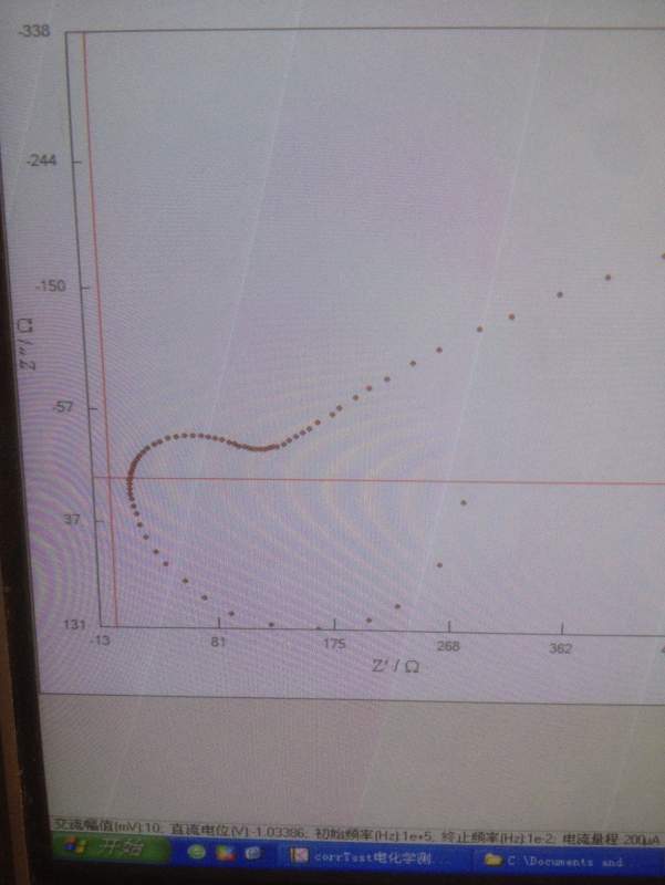 我用武汉科斯特的电化学工作站,把钢片浸泡在3.5% NaCl中测试其阻抗谱,得到如下图。测试时,图谱是从x轴下方开始出图,请问谁遇到过,引起的原因是什么?
