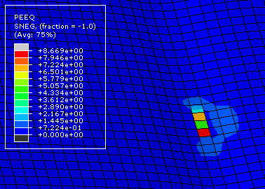 哪位大神们帮我看看,,我用ABAQUS仿真板材渐进成形,属于板材大变形的那种,可是在分析结果中,局部某个网格出现了700%的等效应变,其他位置应变比他小了一个数量级,,这个是怎么回事?请虫神们帮助一下小虫,,小虫在这里谢过了。 渐进成形结果.PNG |