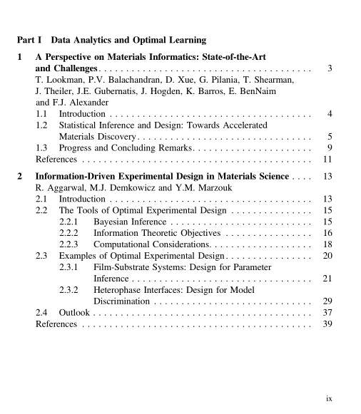 Information Science for Materials Discovery and Design Editors: Turab Lookman, Francis J. Alexander, Krishna Rajan ISBN: 978-3-319-23870-8 (Print) 978-3-319-23871-5 (Online) |