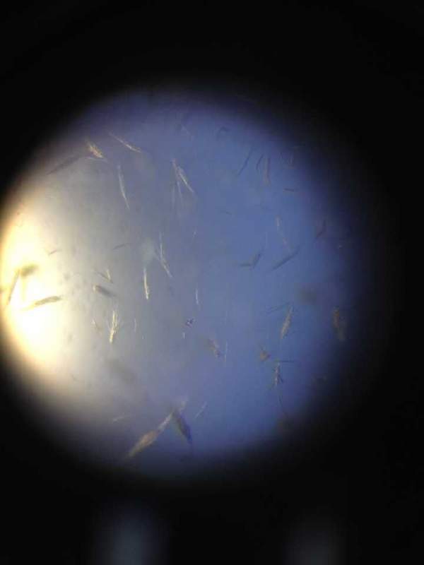 各位大侠好,最近做一个蛋白结晶,得到如下一些,不知道是不是蛋白晶体,在附近怎么优化都没有改变,求助啊! 大家能不能帮忙判断一下是不是蛋白晶体,如果是的话应该如何优化,谢谢大家了,不胜感激! 1.jpg 2.jpg 3.jpg |